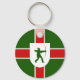 Keychain with design with a flag of historic county of Nottinghamshire, in England, Great Britain; green flag with a red cross, with inescutcheon with illustration of Robin Hood in the centre
