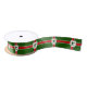 Ribbon with design with a flag of historic county of Nottinghamshire, in England, Great Britain; green flag with a red cross, with inescutcheon with illustration of Robin Hood in the centre