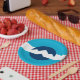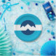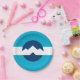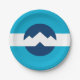Paper Plate with a design with the flag of Ogden, Utah. A blue and white flag with mountain peaks in the centre