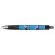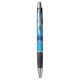 Pen with a design with the flag of Orem, Utah. A blue, white, and yellow flag with mountain peaks and the sun in the centre
