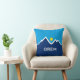 Pillow with a design with the flag of Orem, Utah. A blue, white, and yellow flag with mountain peaks and the sun in the centre