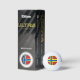 Golf Ball with a flag of historic county of Orkney, in Scotland, Great Britain; red flag with blue and yellow Nordic cross