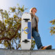 Skateboard with a design with the flag of Orlando, Florida. A blue and white flag