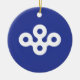 An ornament with a design with the flag of Osaka Prefecture in Japan (大阪府, Ōsaka-fu), a blue flag with a white symbol