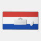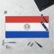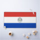 Add a touch of South American pride to your workspace with the Flag of Paraguay Desk Mat. This design features the unique and historic horizontal tricolor of red, white, and blue. Red symbolizes justice, white represents peace, and blue signifies liberty. At the center lies the National Coat of Arms, featuring a yellow star surrounded by a green palm branch and olive branch, tied together with ribbons in the national colors.
