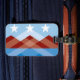 Luggage Tag with a design with the flag of Peoria, Arizona. A blue, brown, and white flag with mountain peaks and three stars