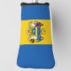Golf putter cover with flag of city of Philadelphia, Pennsylvania; flag with three vertical bands of blue and yellow with city’s coat of arms in the center