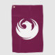 Golf Towel with a design with the flag of Phoenix, Arizona. A maroon flag with a white phoenix in the centre