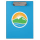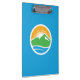 Clipboard with a design with the flag of Provo, Utah. A blue flag with the Provo City logo in the centre. The logo represents the Utah lake and nearby mountain peaks with the rising sun in the background