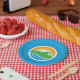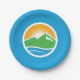 Paper Plate with a design with the flag of Provo, Utah. A blue flag with the Provo City logo in the centre. The logo represents the Utah lake and nearby mountain peaks with the rising sun in the background