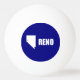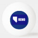 Ping Pong Ball with flag of city of Reno, Nevada; blue flag with white shape of Nevada with star symbolizing Reno’s location inside the state