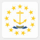 The flag of the state of Rhode Island, United States, is white and consists of a gold anchor in the centre (a symbol for hope) surrounded by thirteen gold stars (for the original Thirteen Colonies and Rhode Island's status as the 13th state to ratify the Constitution). A blue ribbon below the anchor bears the state's motto in gold: "HOPE". The flag is frequently depicted with golden fringe around the edges of the flag, although the fringe is never actually on the flag unless it is used in federal-level displays, much like the national flag