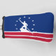 Golf putter cover with flag of city of Richmond, Virginia; blue flag with red and white stripes, with white stripes and silhouette of man working James river bateau down the James river