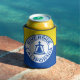 Can Cooler with the flag of Riverside, California. A yellow and blue flag with the seal of the city in the centre