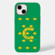 iPhone 14 Case with design with a flag of historic county of Rutland, in England, Great Britain; green flag with acorns and a golden horseshoe in the centre