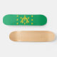 Skateboard with design with a flag of historic county of Rutland, in England, Great Britain; green flag with acorns and a golden horseshoe in the centre