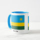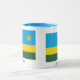 The flag of Rwanda was adopted on October 25, 2001. The flag has four colours: blue, green, and two forms of yellow (standard yellow for the middle band and what the Pantone system calls "sun yellow" for the sun). The blue band represents happiness and peace, the yellow band symbolizes economic development, and the green band symbolizes the hope of prosperity. The sun represents enlightenment.[2] The new flag represents national unity, respect for work, heroism, and confidence in the future. It was adopted to avoid connotations to the 1994 genocide.