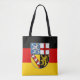 Tote bag with flag of Saarland; design with horizontal tricolor of black, red and yellow (golden), with state’s coat of arms in the centre