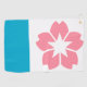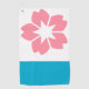 Golf Towel with a design with the flag of Salem, Oregon. A white and blue flag with a pink cherry blosson