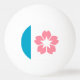 Ping Pong Ball with a design with the flag of Salem, Oregon. A white and blue flag with a pink cherry blosson