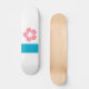 Skateboard with a design with the flag of Salem, Oregon. A white and blue flag with a pink cherry blosson