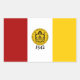 Stickers with a flag of San Diego, California. A red, white, and yellow flag with the seal of the city in the centre