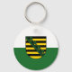Button Keychain with variant flag of Saxony; design with two horizontal bands of green and white, and with state’s coat of arms in the centre