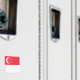 This design features the national flag of Singapore (officially known as the Republic of Singapore), which is a sovereign island city-state in Southeast Asia. Singapore is off the southern tip of the Malay Peninsula. Singapore borders the Straits of Malacca to the west, the Riau Islands to the south and the South China Sea to the east. Singapore has one of the highest population densities of any country in the world. Singapore has four official languages: English, Malay, Chinese and Tamil.