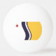 Ping Pong Ball with a design with the flag of South Bend, Indiana. A white, blue, and yellow flag with a red star