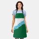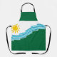 Apronr with a design with the flag of Spokane, Washington. A white and green flag with blue lines symbolizing the Spokane river and Spokane Falls and a yellow sun