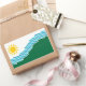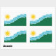 Sticker with a design with the flag of Spokane, Washington. A white and green flag with blue lines symbolizing the Spokane river and Spokane Falls and a yellow sun