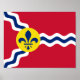 Poster with flag of city of St. Louis; red flag with white and blue waves and blue fleur-de-lys in yellow circle