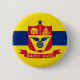 Round Button with flag of city of St Paul, Minnesota; flag with three horizontal stripes of blue and yellow with red emblem in the centre