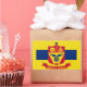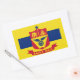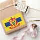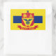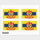 Sticker with flag of city of St Paul, Minnesota; flag with three horizontal stripes of blue and yellow with red emblem in the centre