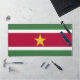 Add a vibrant touch of South American culture to your workspace with the Flag of Suriname Desk Mat. This design prominently features the striking national flag of Suriname: horizontal bands of green, white, and red, with a large golden five-pointed star at the center. The green represents the country's fertile land and hope, white symbolizes freedom and justice, and red stands for love and progress. The central golden star is a symbol of unity and a bright future for all ethnic groups in Suriname.