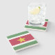 This design features the national flag of Suriname (officially known as the Republic of Suriname), which is a country on the northeastern Atlantic coast of South America. Suriname is bordered by the Atlantic Ocean to the north, French Guiana to the east, Guyana to the west and Brazil to the south. Suriname is the smallest sovereign state in South America. Most of the country's population live on the north coast, in the region of Suriname's capital and largest city, Paramaribo.