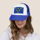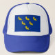 Hat with design with design with a flag of historic county of Sussex, in England, Great Britain; blue flag with six gold martlets