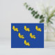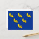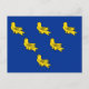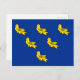Postcard with design with a flag of historic county of Sussex, in England, Great Britain; blue flag with six gold martlets