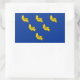 Sticker with design with a flag of historic county of Sussex, in England, Great Britain; blue flag with six gold martlets