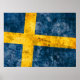 This item has a distressed style Swedish flag at a slight angle. The flag of Sweden is a gold Scandinavian cross on a blue field that extends to the edges of the flag.