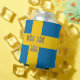 Flag of Sweden with Three Crowns of Sweden superimposed.