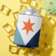 Can Cooler with a design with the flag of Syracuse, New York. A blue, white, and yellow flag