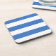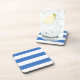 Coasters with design with flag of Tallinn, capital city of Estonia; white and blue striped flag