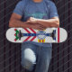 The folks at Zazzle have really done their research on skate decks. The board itself is of high quality, with nice curve. Printing is good; sharp, colour is vibrant. Haven't had an opportunity to see how well it will stand up to skating, but I have high hopes for it.
