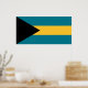 This design features the national flag of the Bahamas (known officially as the Commonwealth of The Bahamas), which is a country within the Lucayan Archipelago of the West Indies in the Atlantic. The archipelagic state consists of more than 700 islands, cays and islets in the Atlantic Ocean. The Bahamas is located north of Cuba and Hispaniola Island (Haiti and the Dominican Republic), northwest of the Turks and Caicos Islands, southeast of the US state of Florida and east of the Florida Keys. The capital of the Bahamas is Nassau on the island of New Providence. The other main inhabited islands are Grand Bahama, Eleuthera, Cat Island, Rum Cay, Long Island, San Salvador Island, Ragged Island, Acklins, Crooked Island, Exuma, Berry Islands, Mayaguana, the Bimini islands, Great Abaco and Great Inagua. The largest island is Andros.