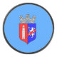 Hockey puck with design with flag of Tirana, capital city of Albania, blue flag with coat of arms