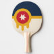 Ping Pong Paddle with a design with the flag of Tulsa, Oklahoma. A beige and navy blue flag with a gold Osage shield containing a red circle and a beige six-pointed star
