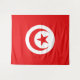 Flag of Tunisia: Mostly red, it has in its middle a white disk with a red crescent that surrounds a five-pointed star.
