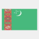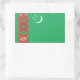 The flag of Turkmenistan (Russian: Флаг Туркмении,Turkmen: Türkmenistanyň baýdagy) was adopted on January 24, 2001. It features a green field with a vertical red stripe near the hoist side, containing five carpet guls (designs used in producing rugs) stacked above two crossed olive branches similar to those on the flag of the United Nations; a white waxing crescent moon, typical of Turkic symbology, and five white five-pointed stars appear in the upper corner of the field just to the fly side of the red stripe.