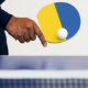 The flag of Ukraine is a banner of two equally sized horizontal bands of blue and yellow. The top represents sky and the yellow represents wheat.